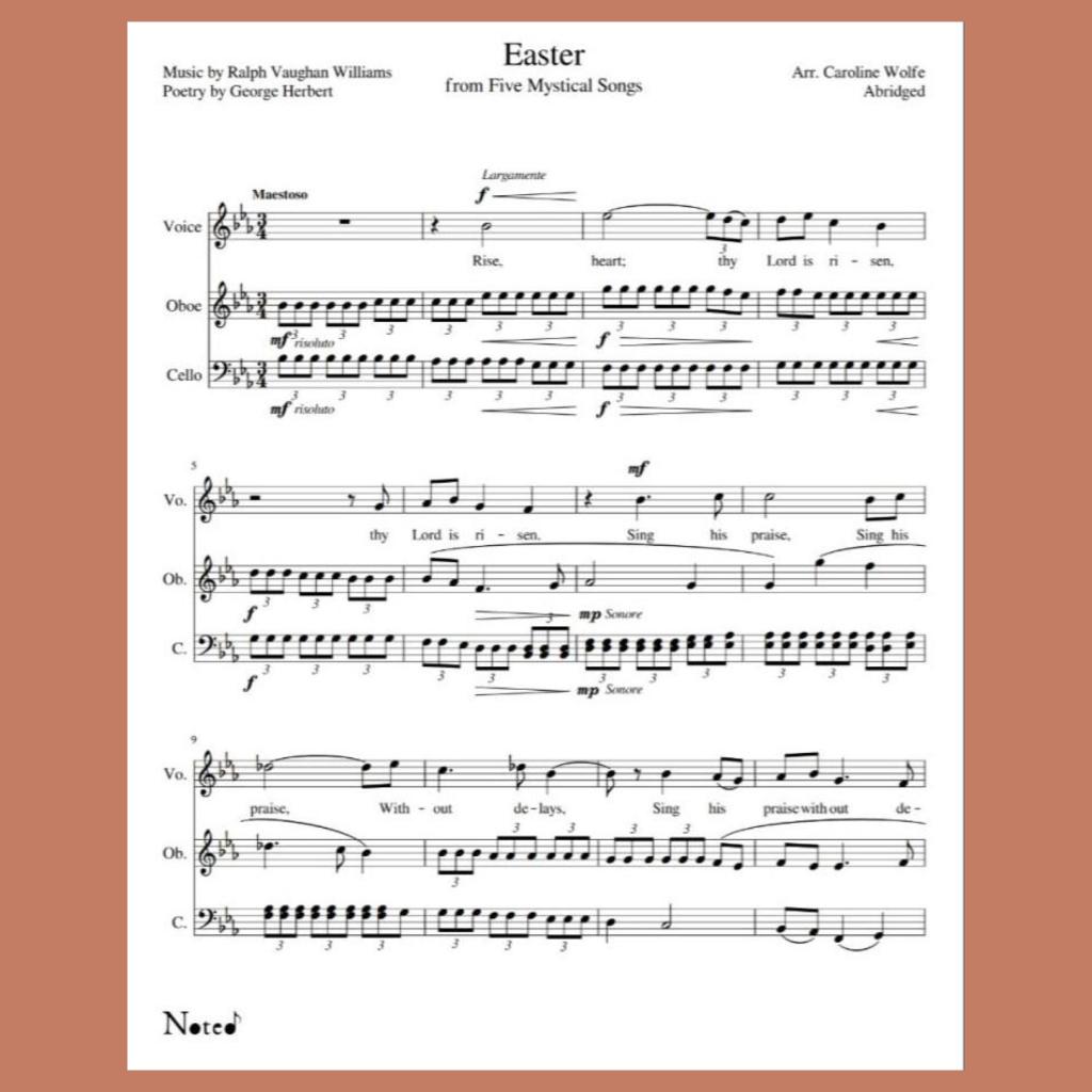 Five Mystical SongsRalph Vaughn WilliamsArr. Caroline WolfeSymphonic movementFor Voice, Oboe, CelloAbridged$3.36